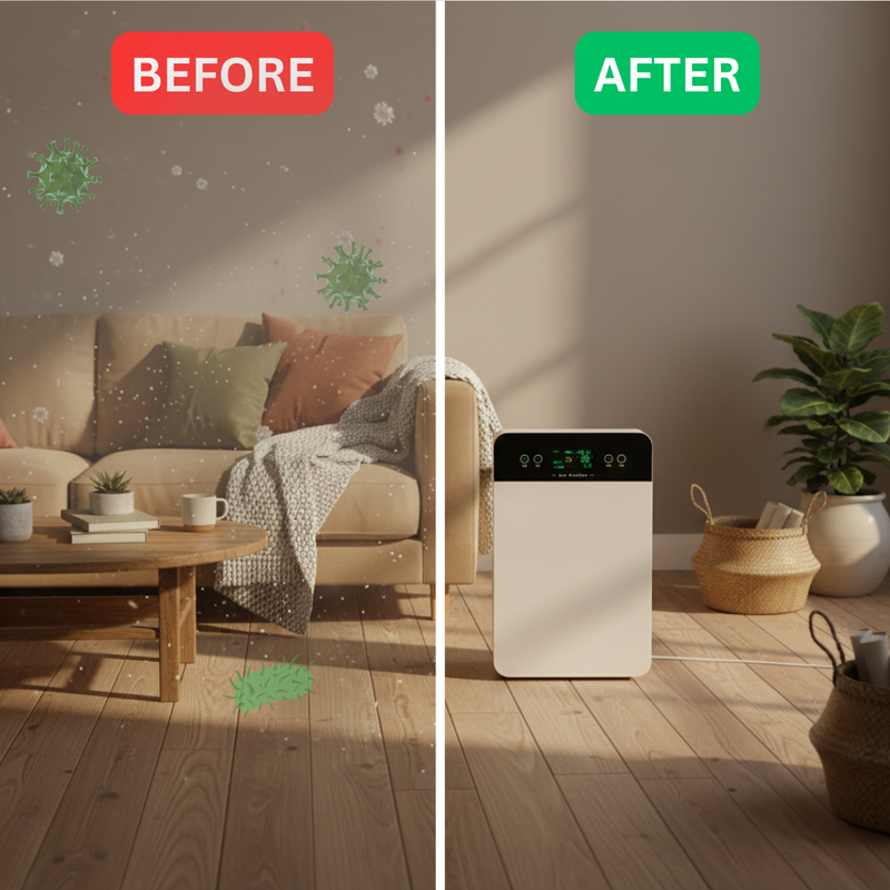 Most households feel a difference quickly. The purifier works in minutes to reduce heavy, stale air and remove fine particles that settle on surfaces. Rooms often feel lighter, fresher and cleaner especially in homes with pets, allergy sufferers, mould issues or poor ventilation.